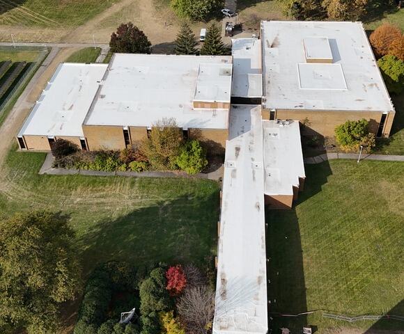These are only a few examples of the many roofs we replaced at the Scott Park Campus in Toledo, OH with our commercial roofing crews. This is a Carlisle SURE-WELD .060 REIN. STD WHITE TPO roof.